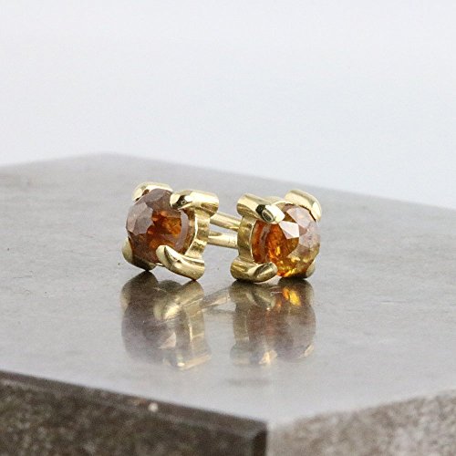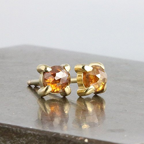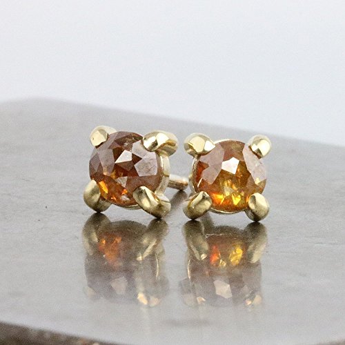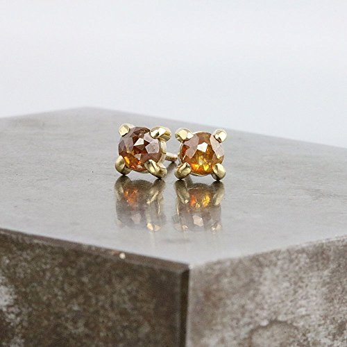 -. Title : Tiny Rose Cut Diamond Stud Earrings - 14k Yellow Gold and 4mm Orange Brown Diamonds