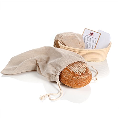 ✔ YOUR ALL IN ONE PROFESSIONAL PROOFING SET:you'll have everything you need to make your own perfect and healthy bread.1 piece banneton with cloth liner+1 piece dough scraper+1 piece bread bag to keep your bread fresh