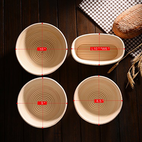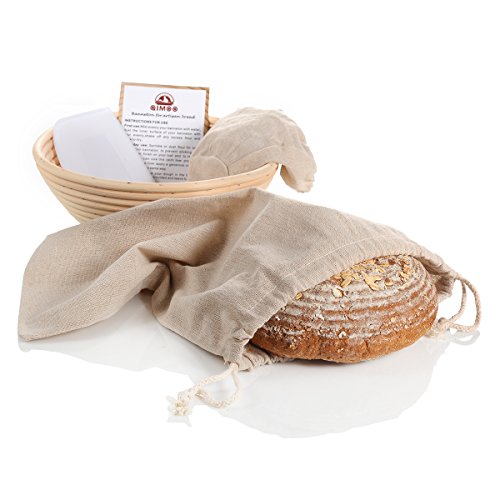 Round 8.5" banneton brotform dough proofing basket set for artisan bread with liner & dough scraper & bread bag