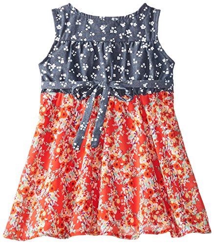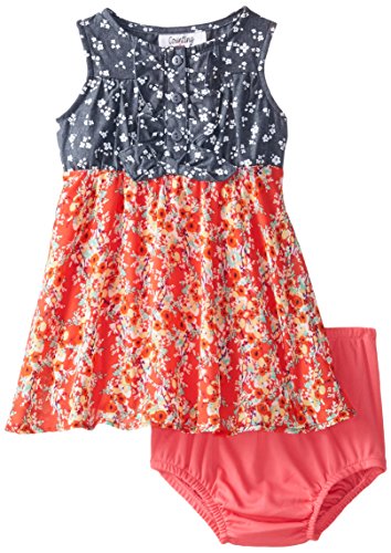 Chambray ruffled bodice to floral print chiffon skirt with panty