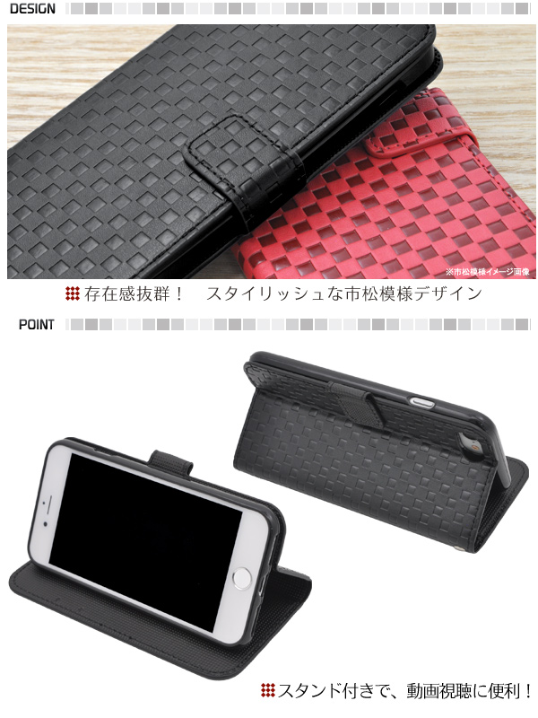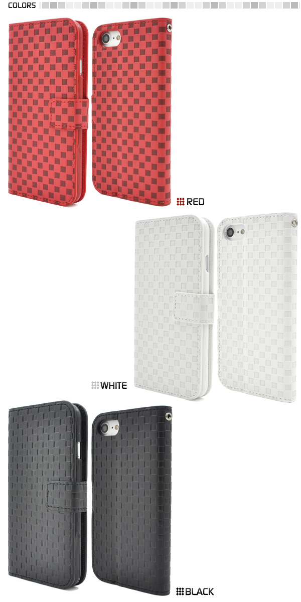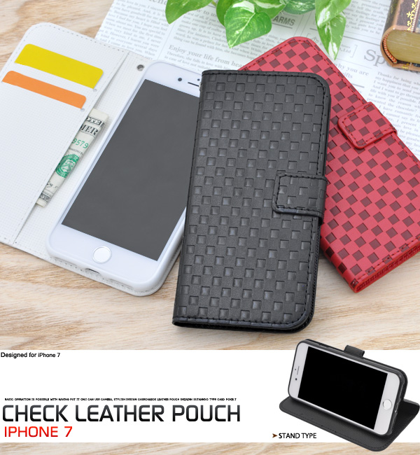 市松模様レザーデザインのiPhone 7用スタンドケースポーチ。
