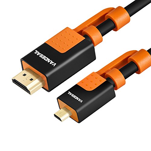 Micro HDMI to HDMI Cable, VANDESAIL Strengthened High Speed Micro HDMI to HDMI Cable Double Shielded Video Cable, Support Ethernet, 4K, 3D and Audio Return (2m/ 6.5ft, HDMI to Micro HDMI)