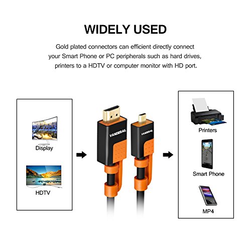 ★CONVENIENT CONNECTION -- Gold plated connectors can efficient directly connect your Smart Phone or PC peripherals such as hard drives, printers to a HDTV or computer monitor with HD port.