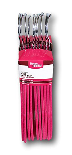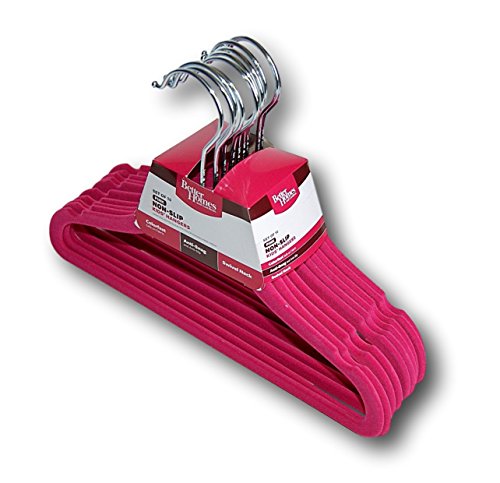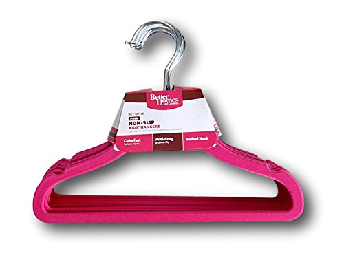 -. Binding : Kitchen -. Brand : Better Homes & Gardens -. Color : Hot Pink -. EAN : 0856873001534 -. Feature : Measurements: 12" wide, 8.5" height, .25" depth / A velvety space-saving hanger / Double or triple your closet space / Velvet flocked material - prevents clothes from slipping / Swivel neck hooks; Colorfast, safe on fabric; Anti-snag and Anti-slip -. IsAutographed : 0 -. Label : Better Homes and Gardens -. Manufacturer : Better Homes and Gardens -. NumberOfItems : 1 -. ProductGroup : Home -. ProductTypeName : HOME -. Publisher : Better Homes and Gardens -. Studio : Better Homes and Gardens -. Title : Better Homes and Gardens No-Slip Flocked Kids' Hangers - Set of 10 (Hot Pink) -. UPC : 856873001534