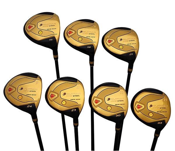 3番~15番まで、計7番手のご準備があります☆フェアウェイウッドが苦手な方にもやさしく打てる設計です。スライス防止のウェイトがついています♪ゴールドカラーが美しい!!非公認のため公式競技では使えませんが、飛距離UPするのでとても人気があります!! |