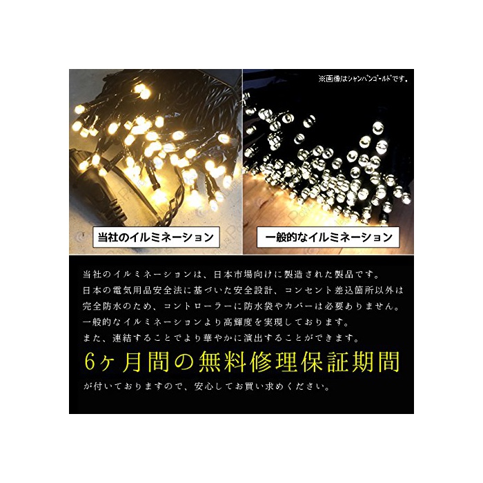 nucleus 파워 【 일본 시장용 】【 6개월 보증 】 고품질방 우사용 / 연결 가능 / 고휘도 에너지 절약 LED 200공 일류미네이션 전8패턴 점등 기억장치 메모리 기능약20m PSE (샴페인
