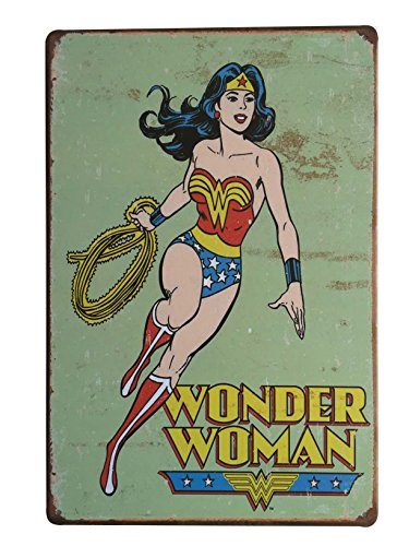 Uniquelover Superhero Wonder Woman Retro Harley Motorcycle Vintage Metal Tin Sign Wall Decor 12" X 8" Inches