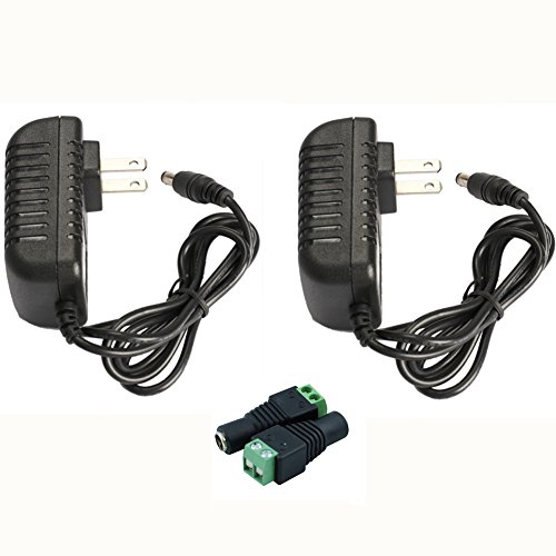 12V 2A Adapter,AC 100-240V to DC Switching Regulated Converter Power Supply with Wall Plug for 5050 3528 SMD LED strip Light Transformer,CCTV Security Camera System,2pcs 5.52.1MM DC Connector,2Pack