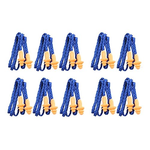 -. Feature : 10 pairs of the corded hearing protection ear plugs in one set will be sold together. / Cord color: mainly blue. Material: durable soft silicone. Cable length: about 65cm. / NRR (Noise Reduction Rating): about 25dB. / Made of soft and snug silicone for noise reduction and providing you better hearing protection. / Noise reduction for work, home, sleeping and safety. Washable and reusable design, and easy to use.