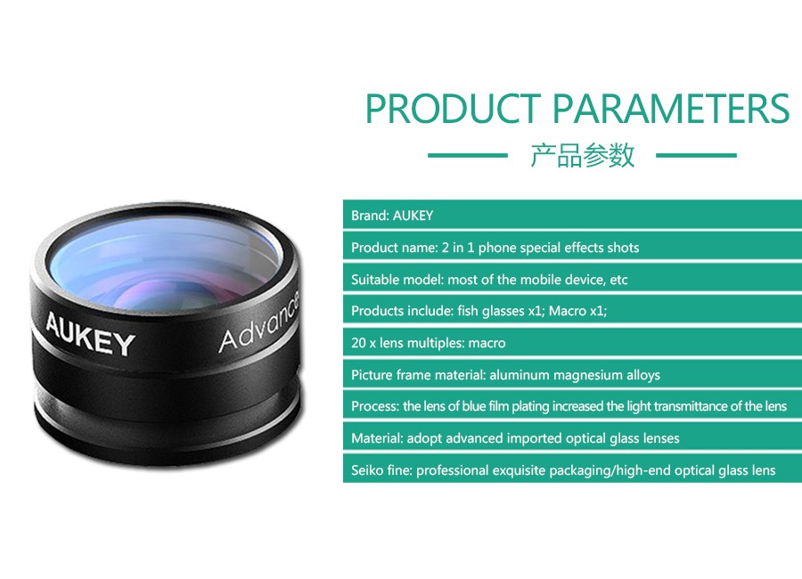 ANGLE: Fisheye Lens: 160° / Micro Lens: 10X amplification