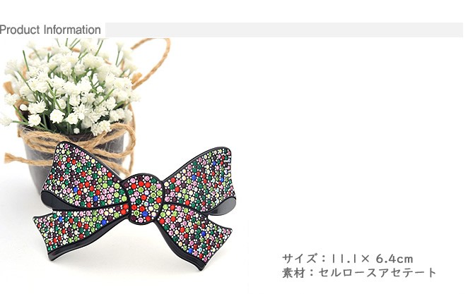 ***美しいデザインの大きめリボンモチーフにきらきらストーンを敷き詰めた、輝くリボンヘアバレッタ*☆*華やかさとゴージャス感を与えてくれます***【サイズ】11.1×6.4cm【素材】セルロースアセテート、スワロフスキー【メーカー】アズナブル(Aznavour)*PC環境により色味が多少異なって見える場合がございます。予めご了承下さいませ。
