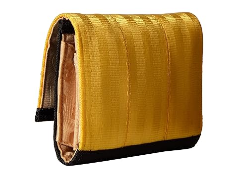 SKU: #8812923 Snap up the completion with this wallet. Made of 100% recycled nylon seatbelts. Snap closure. Lined interior. Middle coin zip pocket. Two interior slip pockets with four credit card slots. Made in the U.S.A. Measurements: Bottom Width: 5 3?4 in Depth: 1 1?2 in Height: 3 1?2 in Weight: 3.2 oz |