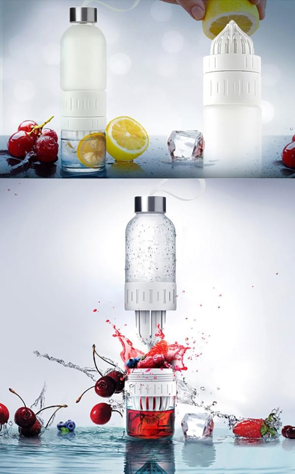フルーツ絞り器とジューサーがビルトインになったボトル。オフィスでもピクニック時にも、気軽に色々なフレーバーウォーターを楽しめます♪