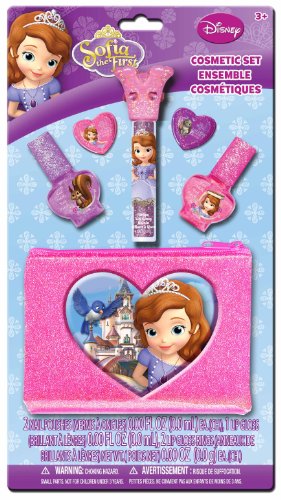 Product DescriptionSofia the First Girls Cosmetic Set. Includes: 1 Lip Gloss Wand, 2 Pots of Lip Balm, 2 Nail Polishes and Carrying Case. Ages: 3 0