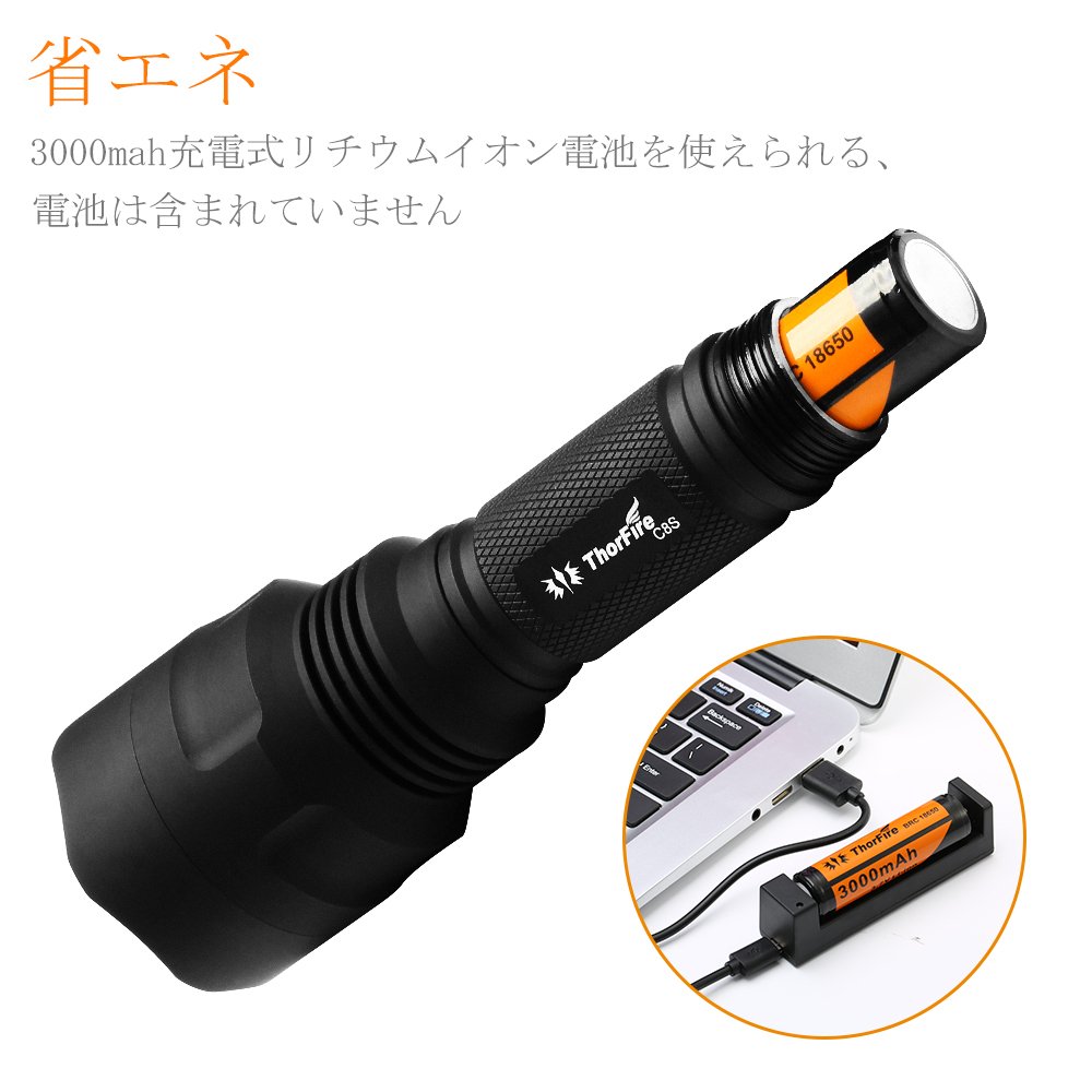 The XLamp XM - L2 LED has output more than 20% higher than the conventional XM - L element, it can be driven with a large current of 2.8 A and ThorFire C 8 s can output up to 900 lumens.