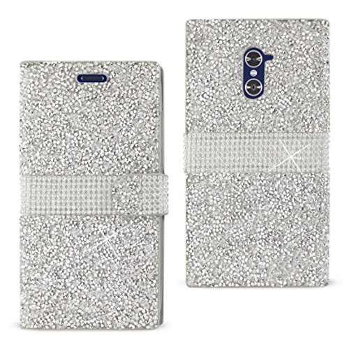 Reiko ZTE Grand X Max 2/Z988 Jewelry Rhinestone Wallet Case - Retail Packaging - Silver