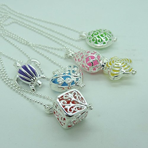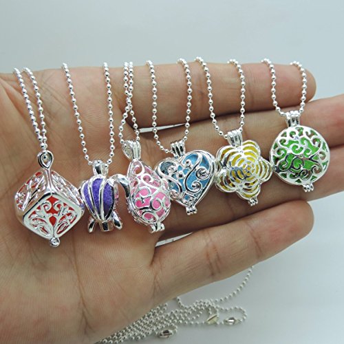 6pcs Mixed Style Silver Plated Brass Waterdrop Cube Shape Locket Cage Fragrance Essential Oil Aromatherapy Diffuser Charms Pendant Necklace