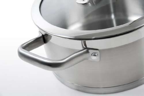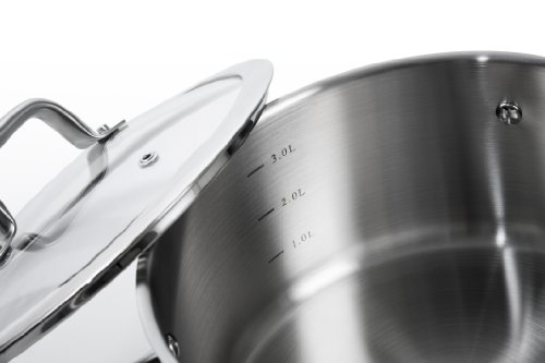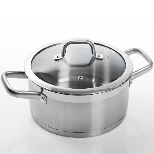 4.2-quart casserole with lid; Constructed with 18/10 commercial grade stainless steel, heavy gauge impact-bonded aluminum encapsulated bottom, build to last for a life time. Ergonomically shaped handle with anti-slippery satin finish, handle is riveted to pan provide durability. Suitable for all cooking source, electric, gas, infrared, induction stove or glass and ceramic cooktop. Dishwasher-safe; oven-safe to 550 degrees F; Freezer-safe for food storage; Lifetime limited warranty.