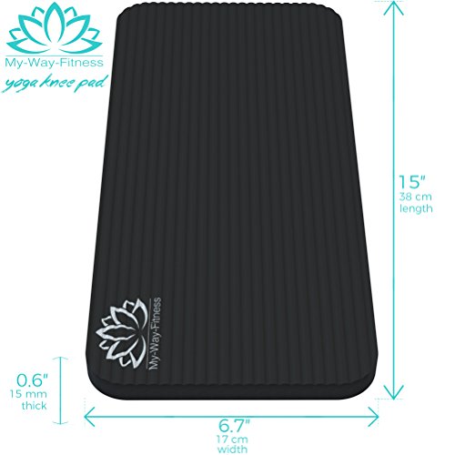 - YOGA KNEE PAD by MWF is extremely light and portable (15"x6.7"x15 mm Thick) and will offer you all the comfort and protection you want. You don’t need a huge knee pad for yoga classes, our knee pad size and thickness is perfect! Our Yoga mat’s thick, durable cushion will protect your joints for a pain free yoga experience. Works great in tandem with your yoga mat and yoga set. Ideal for Yoga, Pilates, stretching, meditation, gardening and any exercise or activity, protecting your knee injuries.