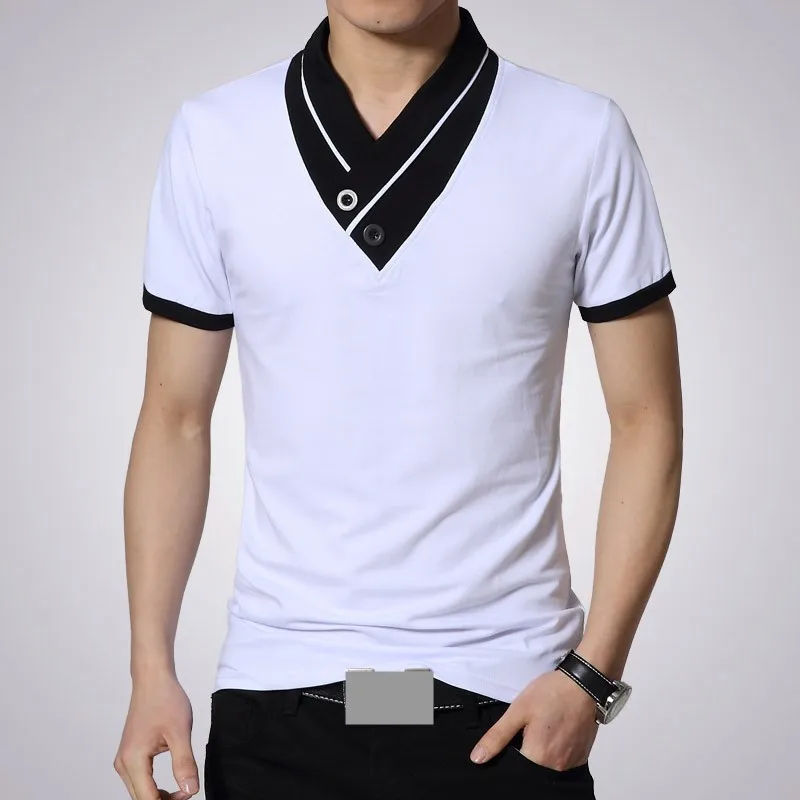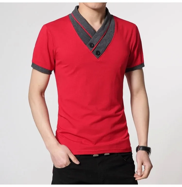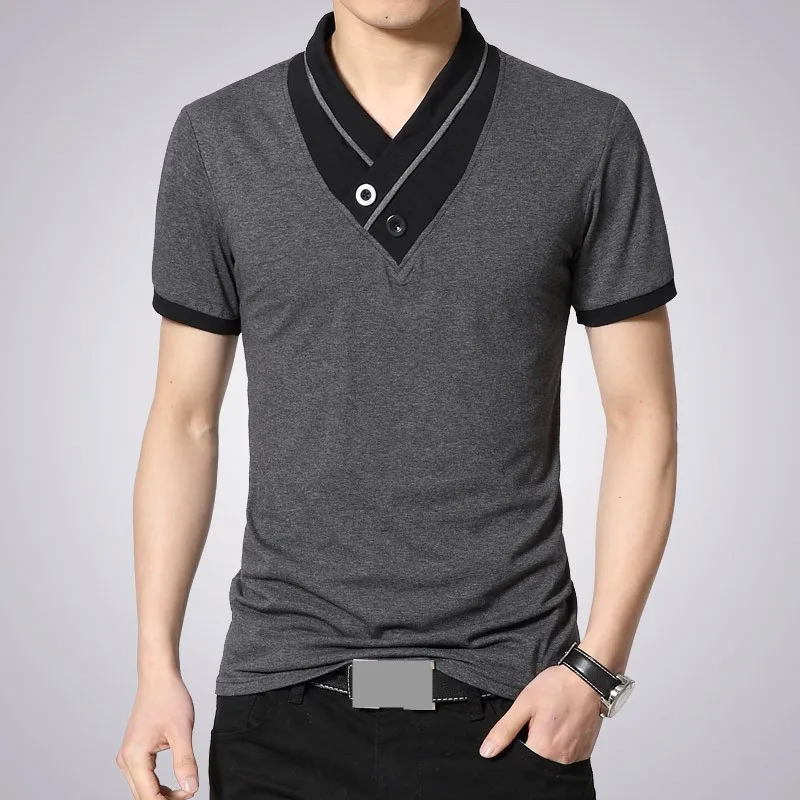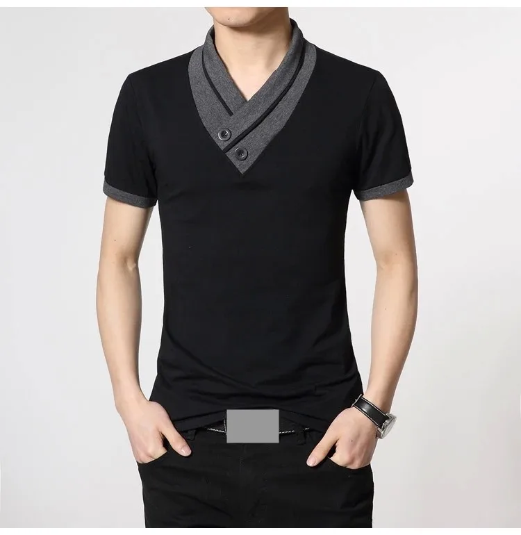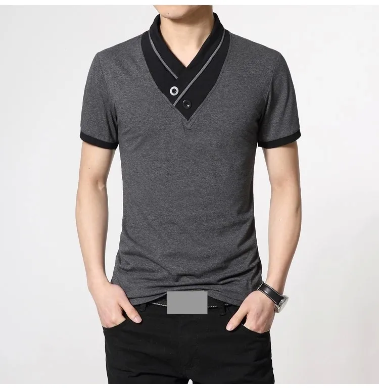 Free shipping 2016 New Mens summer leisure T-shirt fashion slim short sleeve V neck T shirt button decorating Tees / Tops Q19