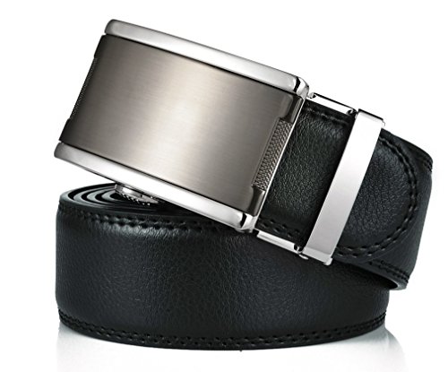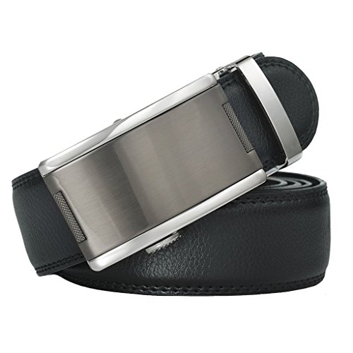 Binding : Apparel Product Description [Brand]: MUNESME. [Product Name]: Automatic Buckle Leather Belt (waistband/waistbelt) for Men. [Color]: Belt body: Black; Belt buckle: Grey. [Style]: Business/Leisure. [Material]: Belt body: PU; Belt buckle: Metal (Zinc alloy). [Buckle Type]: Automatic. [Leather Type]: Semicircle end; Litchi grain. [Weight]: About 0.23KG. [Size of the Belt Buckle]: (1). External Width: 4.2CM; (2). Internal Width: 3.5CM; (3). Length: 8.1CM; (4). Height: 2CM. [Size of the Belt Body]: (1). Width: 3.5CM; (2). Length: 105CM/110CM/115CM/120CM/125CM/130CM; (3). Thickness: 0.4CM. [Package]: Shuttle box, 14CM*12.5CM*5CM.