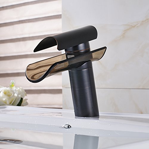 -. Brand : Rozin -. Feature : Factory direcet sales,delivery within 7-10 days / Single Hole Deck Mounted / Cold and hot water -. ProductGroup : Home Improvement -. ProductTypeName : PLUMBING_FIXTURE -. Title : Rozin Oil Rubbed Bronze Waterfall Glass Spout One Hole Single Handle Bathroom Sink Faucet