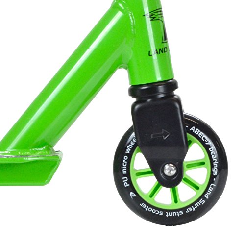-. Binding : Misc. -. Brand : Land-Surfer -. Feature : 360° SWIVEL REINFORCED GRIPPED DECK - As with any good stunt scooter a fully rotating deck is a must for perfecting and expanding your range of tricks. A gripped base with reinforced underside slide plate. The Landsurfer is a complete scooter designed with tricks in mind and IMPROVED for 2017. / LIGHTWEIGHT & ROBUST - A robust tubular steel frame allows for the use associated with performing tricks in a scooter park but weighs only 3.2kg making the Landsurfer an extremely agile scooter. / MICRO SPEED POLYURETHANE WHEELS - 100mm polyurethane high rebound wheels give a smooth ride in cruising mode while adding comfort when landing tricks or jumps. / 4 BOLT STEM COLLAR - A new and improved 5cm 4 bolt stem collar has been added for 2016 increasing safety by reinforcing the handlebar bond. / STUNT SIZE - 80cm high x 50cm wide 'Y' fluted stunt bar with a 10cm wide x 48cm long deck complete with built in rear stunt heel brake. A 2 piece pop lock assembly secured with a 4 bolt stem collar. All scooters supplied in a carry handle presentation box. -. Label : Bopster -. Manufacturer : Bopster -. MPN : Does Not Apply -. PartNumber : Does Not Apply -. ProductGroup : Sports -. ProductTypeName : SPORTING_GOODS -. Publisher : Bopster -. Studio : Bopster -. Title : Land Surfer Stunt Scooter