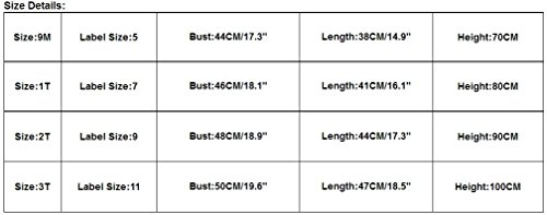 ?: Description: ?: ?: Gender:Girl ?: Clothing Length:Regular ?: Pattern Type:Solid ?: Sleeve Style:Regular ?: Style:Sweet ?: Material:Cotton Blend ?: Decoration:Button ?: Sleeve Length:Sleeveless ?: Package include:1PC dress 1PC Brooch ?: ?: Size Details: ?: ?: Size:9M===Label Size:5===Bust:44CM/17.3"===Length:38CM/14.9"===Height:70CM ?: Size:1T===Label Size:7===Bust:46CM/18.1"===Length:41CM/16.1"===Height:80CM ?: Size:2T===Label Size:9===Bust:48CM/18.9"===Length:44CM/17.3"===Height:90CM ?: Size:3T===Label Size:11==Bust:50CM/19.6"===Length:47CM/18.5"===Height:100CM 0