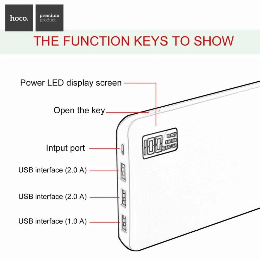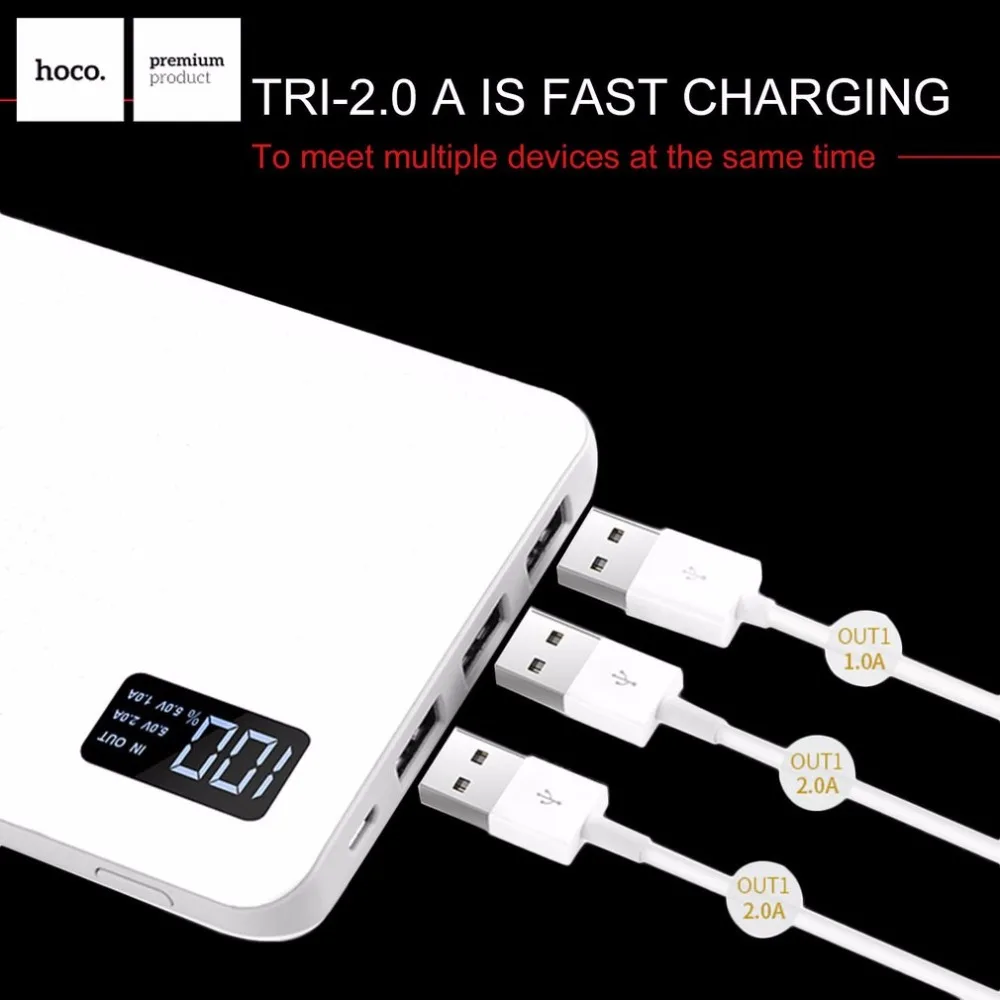HOCO Portable Fast Charger 30000mAh Mobile Power Bank Three USB Output Lithium Polymer Batteries Digital Display powerbank New