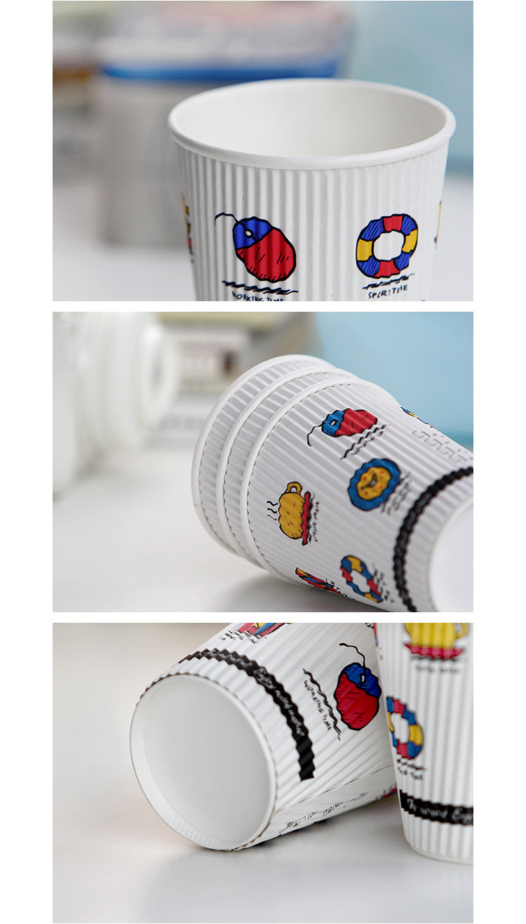 竖型瓦楞杯 一次性纸杯280ML 双层奶茶纸杯 咖啡杯100只 ??