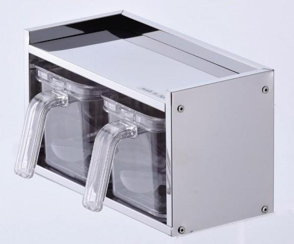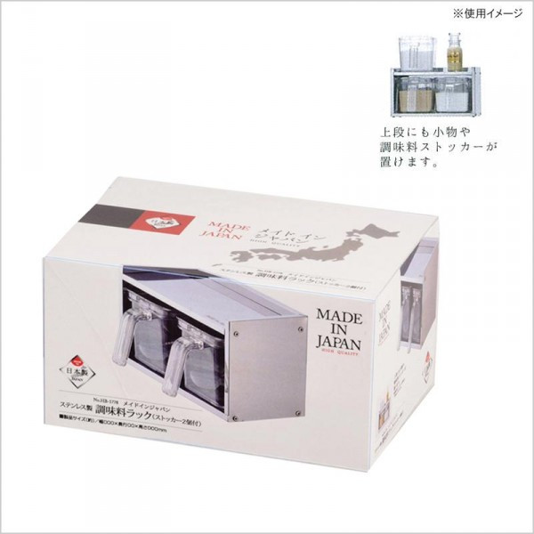 fk094igrjs日本製の調味料ラック。ストッカー付きで便利です。 製造国:日本 素材・材質:本体:ステンレス鋼ストッカー本体:ポリスチレンスプーン:ポリプロピレンすべり止め:合成ゴム 商品サイズ:(約)幅230×奥行155×高さ130mm 仕様:ストッカーの容量:640ml※お届け地域により、別途運賃がかかる場合やお届けできない場合がございますので、お問い合わせ下さい。