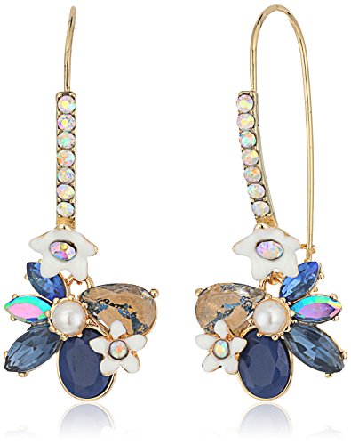 -. Binding : Jewelry -. Brand : Betsey Johnson -. Color : Blue/Multicolor -. Department : womens -. EAN : 0889295152010 -. Feature : Items that are handmade may vary in size, shape and color / Made in China / gold tone long ear wire with crystal accents, white flowers and blue faceted stone flower drop / Imported -. Label : Betsey Johnson Jewelry -. Manufacturer : Betsey Johnson Jewelry -. Model : B11345-E01 -. MPN : B11345-E01 -. PackageQuantity : 1 -. PartNumber : B11345-E01 -. ProductGroup : Jewelry -. ProductTypeName : FASHIONEARRING -. Publisher : Betsey Johnson Jewelry -. Studio : Betsey Johnson Jewelry -. Title : Betsey Johnson "Betsey Blues" Faceted Stone Flower Long Drop Earring -. UPC : 889295152010