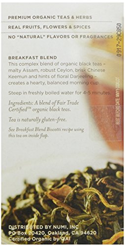 -. Title : Numi Organic Tea Fair Trade Breakfast Blend, Black Tea Bags, 18 Count