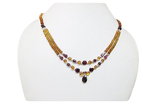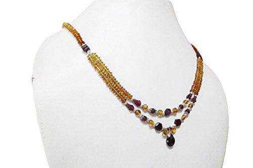 -. Title : Gemstone Garnet & Citrine Beads Necklace with Sterling Silver Findings 16" by Anushruti