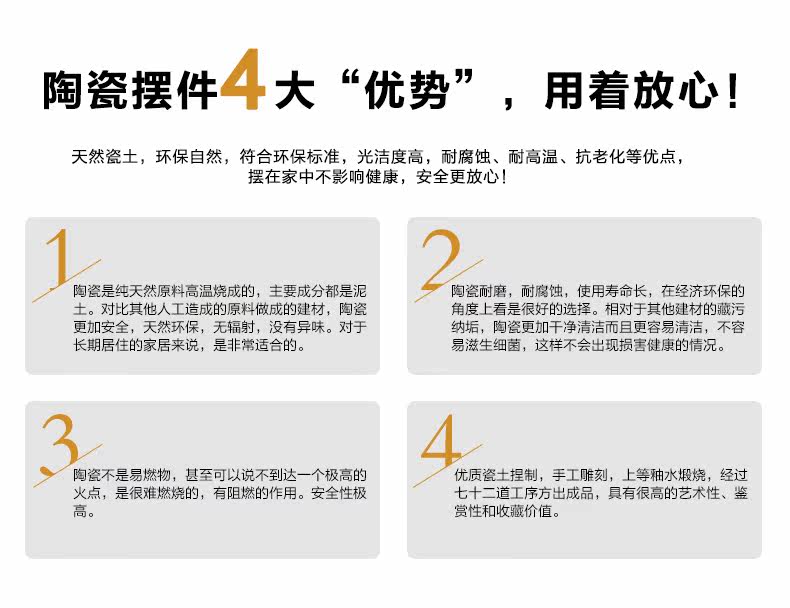 关键词组: 陶瓷摆件、陶瓷瓷雕家居装饰工艺品、摆设礼品
