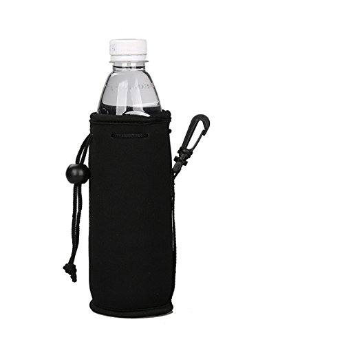 - Features a drawstring to fasten the water bottle top, and a plastic clip to attach it to your backpack.