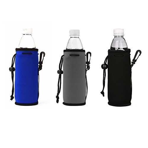 ECO Store 500ML (16.9OZ) Collapsible Neoprene Water Bottle Drawstring Cooler Insulator Holder with Clip - 3 Pack (Royal Blue & Grey & Black)
