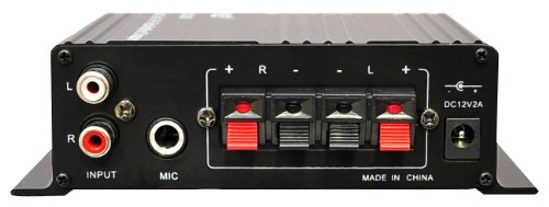 The PFA200 is a small digital amplifier that packs a huge punch. It outputs 30 W over each channel for a total of 60 W maximum. The class T amplifier design is the latest in amp technology, utilizing digital signal processing for the highest quality signal. It works via a 12 V AC/DC adaptor. Input your audio via the 3.5mm iPod/aux-in jack or use the microphone input jack. Short, overload, and overheat protection keep your equipment secure and working hard.