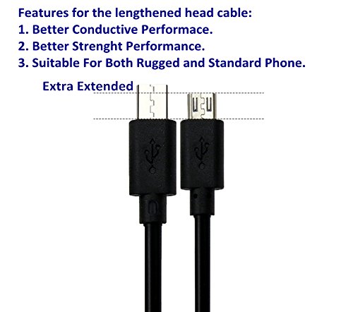NIUBEE Extended Micro USB Plug Cable (Premium 8mm) Fast Charge USB Cord for Cellphone, Tablet, GPS, MP3 Player, Camera, Watch - Data Sync and Charge - 5 FT/1.5m