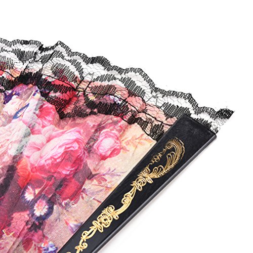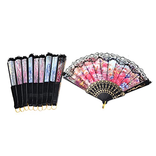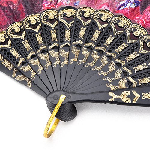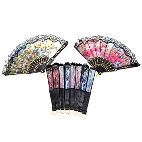 10pcs Spanish Floral Folding Hand Fan Sequin Fabric Folding Handheld Hand Fan, Random Color