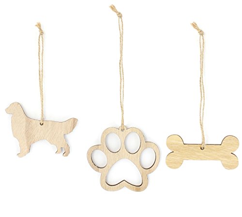 This bundle includes 1 Golden Retriever ornament, 1 paw print ornament, and 1 bone ornament.