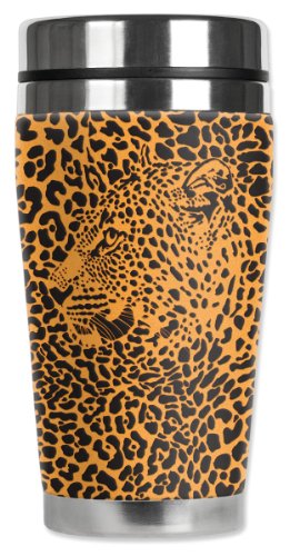 Mugzie Leopard Head Travel Mug with Insulated Wetsuit Cover, 16 oz, Black