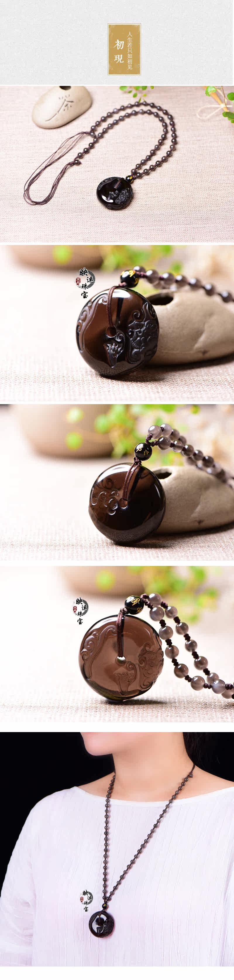 开光天然冰种黑曜石平安扣貔貅吊坠男女士水晶饰品皮休项链坠礼物