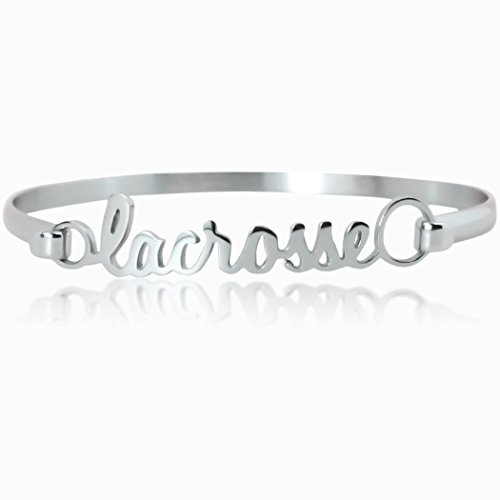 This beautifully designed bracelet makes a great statement for any lacrosse girl. The hook and eye style design make the bracelet easy to put on and take off. The stainless steel material is hypo-allergenic, non-reactive, and resists scratching, making it perfect for all athletes. The polish finish and wrist contouring shape give this bangle bracelet a sleek look. Measures 7" (Fits wrist 5.5" - 6.5").