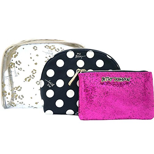 Product Description Get organized in style with the Too Cute 4 U 3PC Set from Betsey Johnson. This festival makeup bags set comes with one large zip pouch for your phone and other little stuff, one medium cosmetic/pencil case, and one small zip coin bag. Each bag features a different print for ultimate versatility. 0