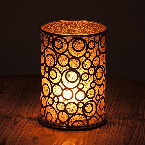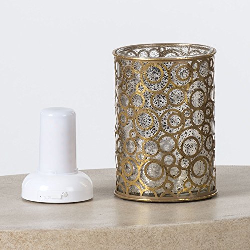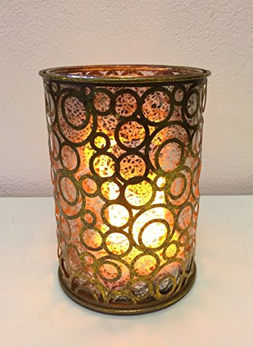 Studio : Windowbox.com Publisher : Windowbox.com Binding : Kitchen Product Description Antique gold hurricane with mottled gold glass insert measuring 5" in diameter x 7" height. Comes with new patented technology Flamewave insert, which gives the most realistic flame on the market. The flames look natural and are ever-changing. It comes with a re-chargeable battery (included) and a USB charging cable that can hook up to your USB port on your computer or adapter. Uses LED technology, averages about 40 hours of use on a full charge. 0