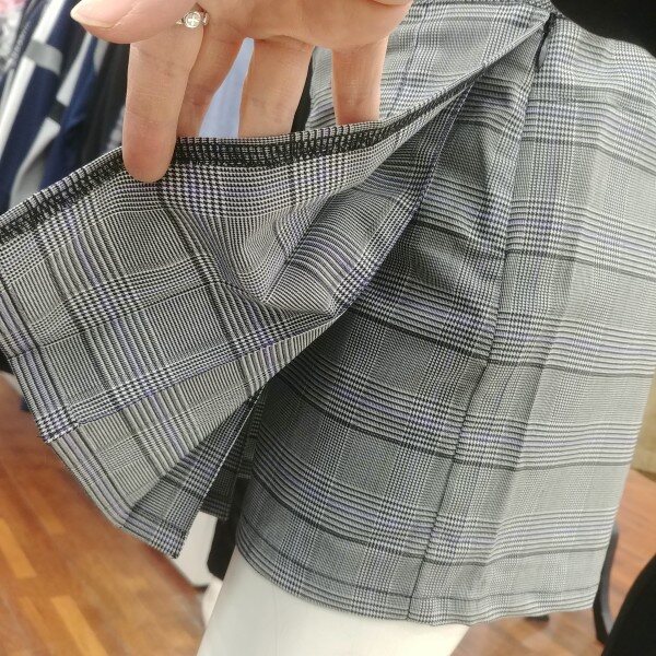 클래식한 체크 디자인의 랩 반바지 입니다.언뜻 보면 테니스 스커트 느낍입미다.활동성이 주어진 반바지입니다.허리 조절이 가능하며 옆 트임의 지퍼 역시 편안하게 디자인 되어 있습니다.