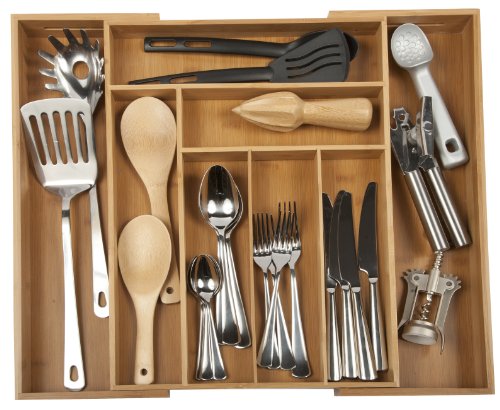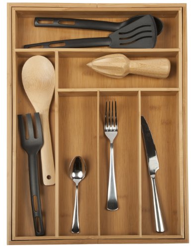 Core Home FWETXL411 2" X 12.8" X 18" Natural Expandable Large Flatware Tray