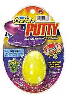 -. Binding : Toy -. Brand : TinFun -. EAN : 7859247649670 -. Feature : Open the Yellow Egg to shape, stretch and bounce this retro toy. / It's bright yellow, solid-liquid goo in a resealable plastic egg. / You just can't stop playing with it. -. Label : TinFun -. Manufacturer : TinFun -. ProductGroup : Toy -. ProductTypeName : TOYS_AND_GAMES -. Publisher : TinFun -. Studio : TinFun -. Title : Play Putty Bright Yellow in Classic Egg-Slime Putty