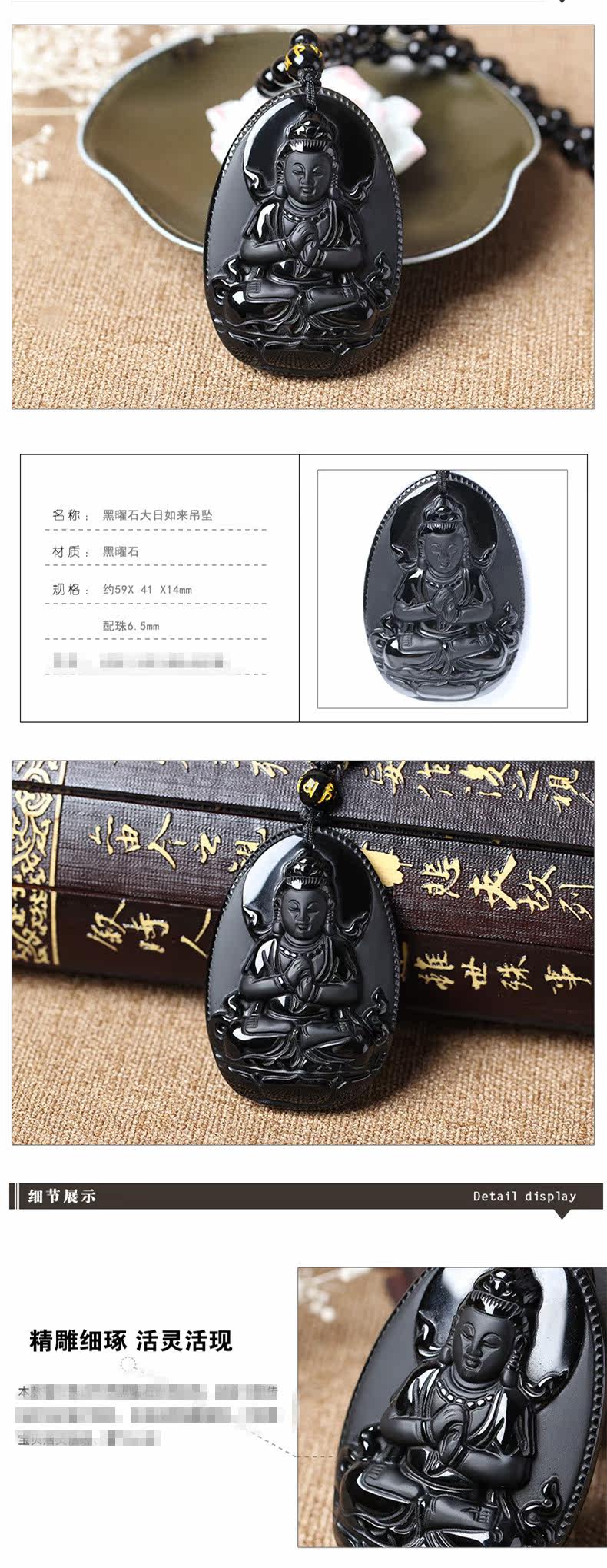 开光天然乌金磨砂黑曜石大日如来佛生肖羊猴本命佛吊坠